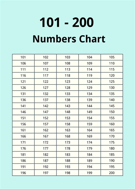 Printable Number Chart 101-200. Web the other features the numbers 101 to 200. Web this is an editable file that allows you to change the font or numbers if you need to.