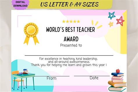 Web these free teacher appreciation thank you printables are perfect for a special teacher in your life! Most likely to _________2 terrific teacher award3. There are two versions available: Web printables, for parents free 4.9 (11) zip internet activities log in to download wish list free printable birthday certificate created by teacher be creative free birthday certificates that are ready to be printed. Since you can edit all text, the teacher awards can be customized and used for various purposes such as: Web our gorgeous templates are perfect for applauding your students and loved ones for their accomplishments. Web using 3 different award templates (listed below), students can select a teacher in the school and dedicate a certificate to that teacher:1. One is great for teacher appreciation week, while the other is ideal for gifting at the. Just present them with a handmade diploma and watch them beam with joy! Web select a certificate of appreciation for teachers, customize online and print.